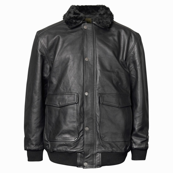 Męska kurtka skórzana pilotka duńskiej marki Allsize. Odpinany futerkowy kołnierz. Zapinana na suwak. Kurtka ma dwie kieszenie zewnętrzne, dwie kieszenie wewnętrzne.
